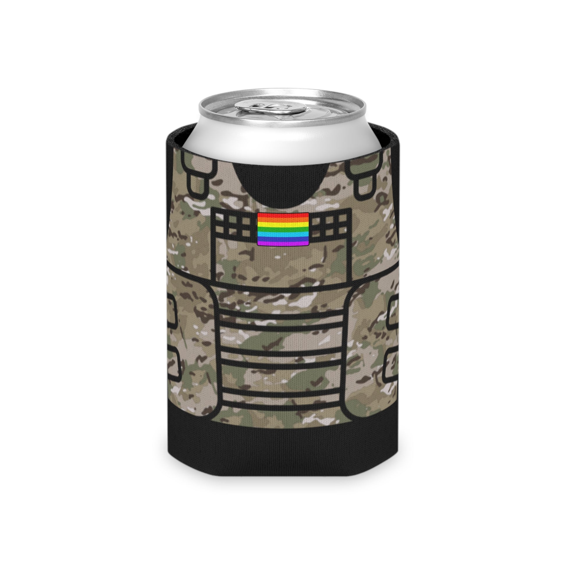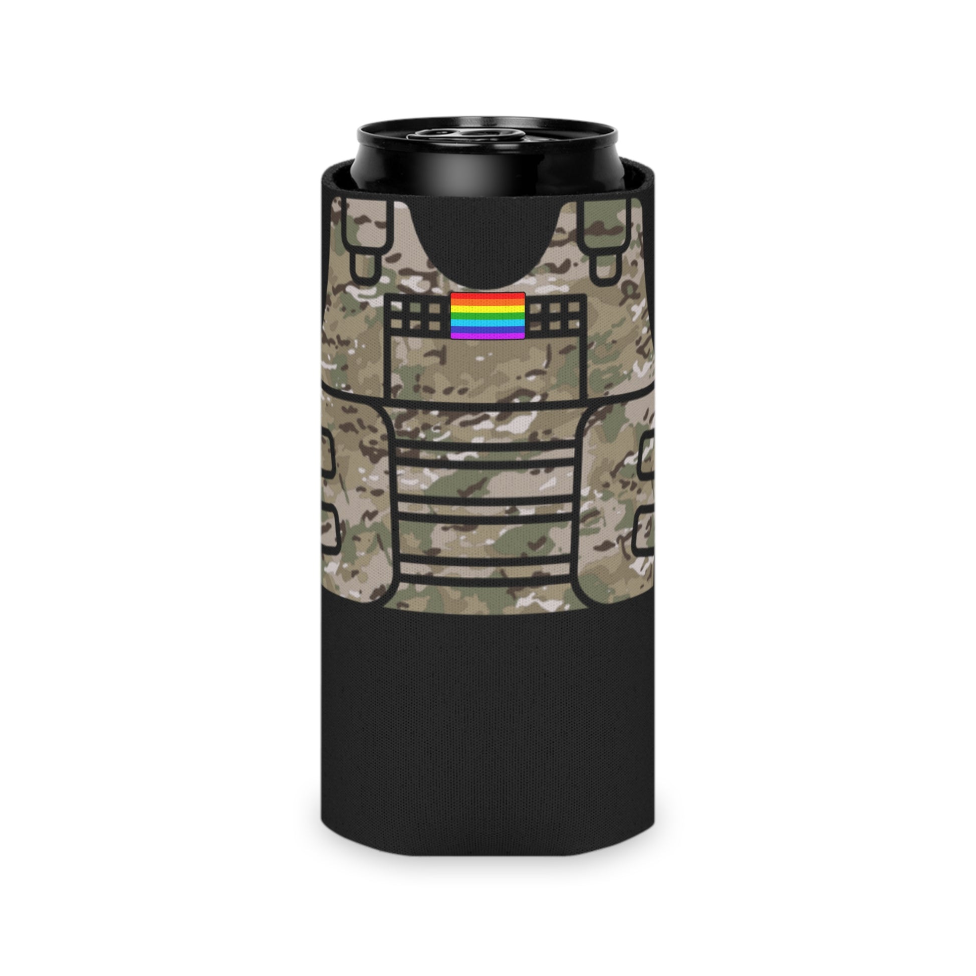 Camo Tactical Vest Can Koozie- Black