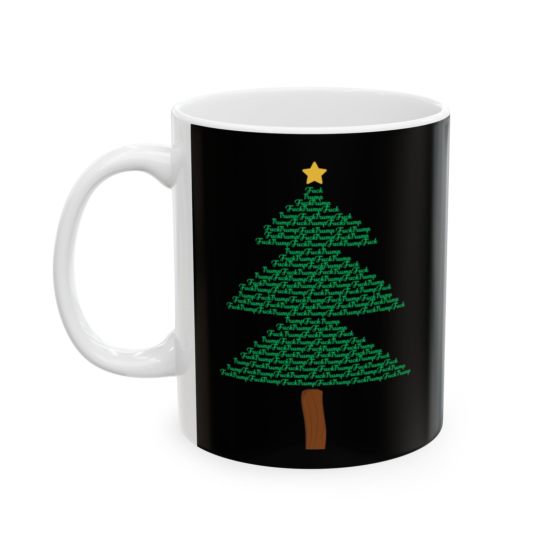 Start your mornings with a cup of resistance and a dash of holiday cheer. This festive mug features a Christmas tree design built entirely from the words “F*** Trump,” stacked into a perfectly defiant evergreen shape. It’s the ideal mix of caffeine, comfort, and unapologetic political expression.