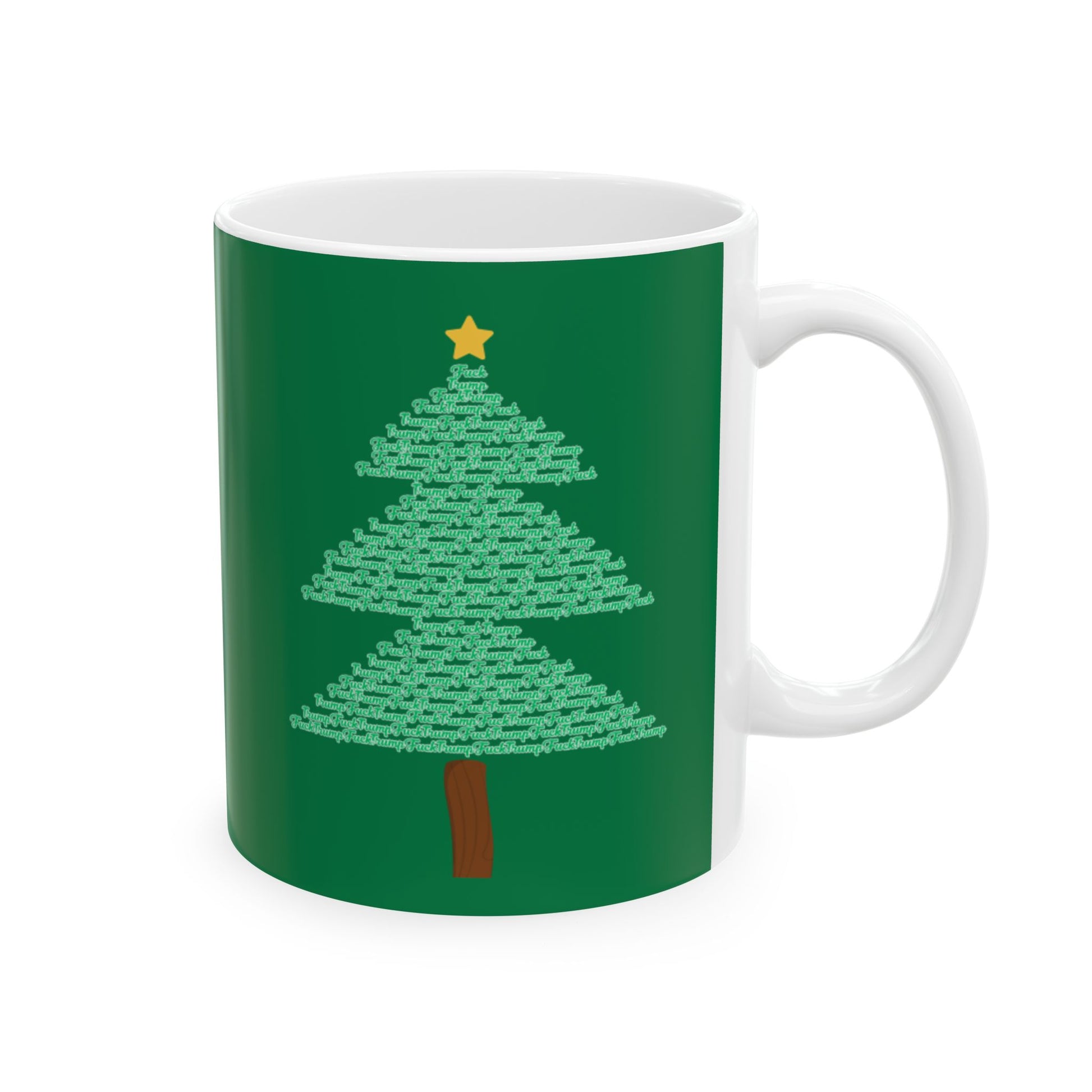 Start your mornings with a cup of resistance and a dash of holiday cheer. This festive mug features a Christmas tree design built entirely from the words “F*** Trump,” stacked into a perfectly defiant evergreen shape. It’s the ideal mix of caffeine, comfort, and unapologetic political expression.