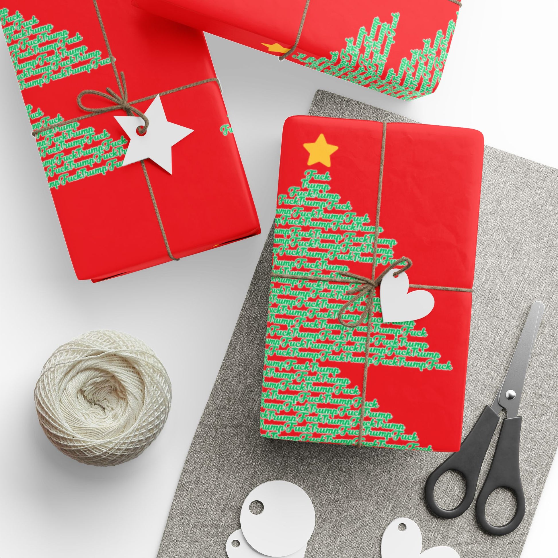 F*** Trump Christmas Tree Holiday Pattern Wrapping Paper- Red