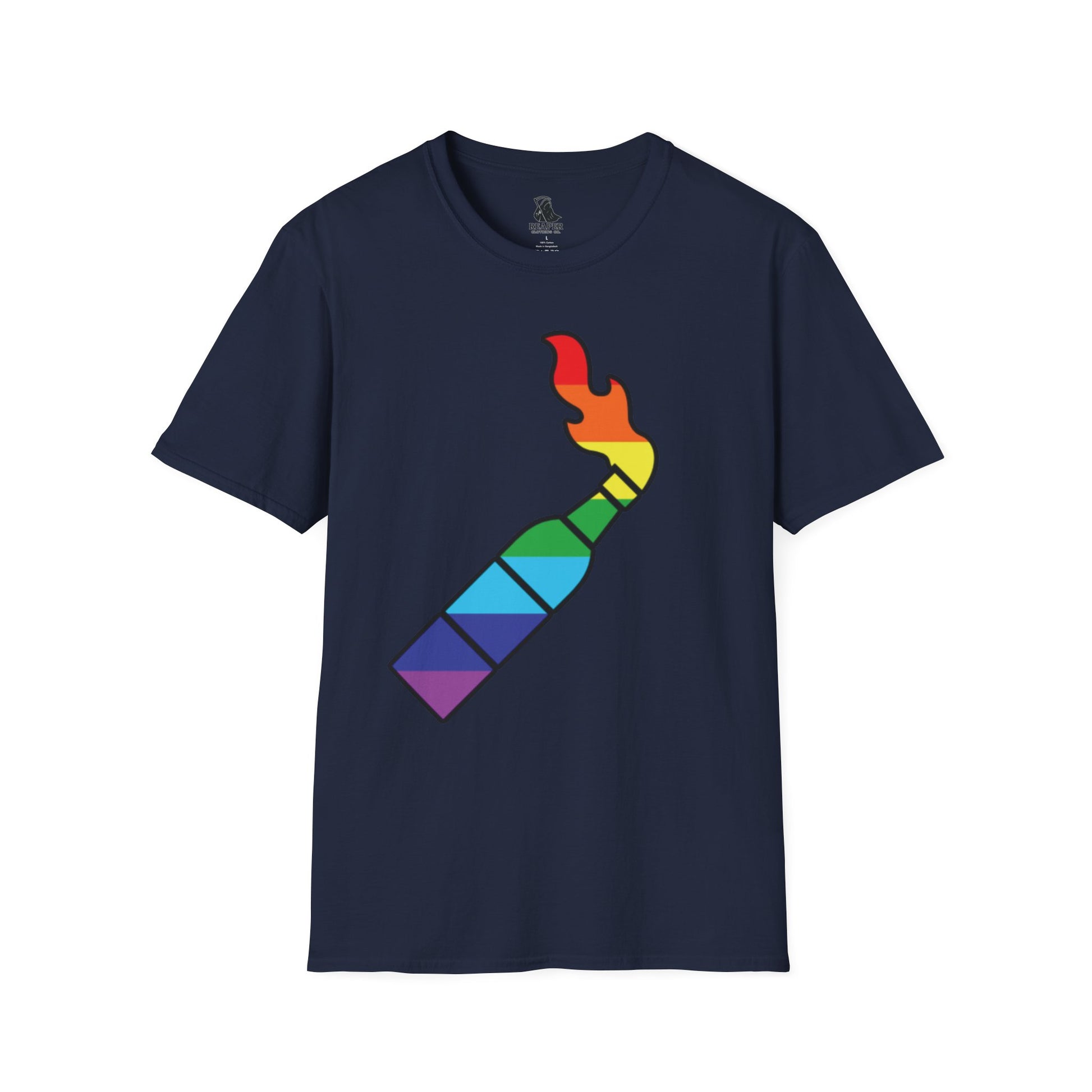 Light the way — boldly. The Pride "Candle "Tee turns a spark of defiance into a beacon of pride. Featuring a vivid design of a “candle” glowing in Pride flag colors, this shirt symbolizes resilience, passion, and the fire that fuels change.